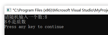 4.输入一个数判断是不是质数。#include<stdio.h>main(){ int i,j; printf("请随机输入一个数:"); scanf("%d",&j); for(i=2;i<=j-1;i++){ if(j%i==0) break; } if(i<j){ printf("%d不是质数",j); }else{ printf("%d是质数",j); } printf("\n");} |