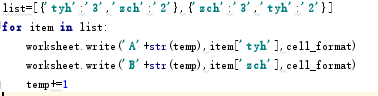 worksheet.write('A2','tyh',cell_format) 第一个参数对应单元格,第二个参数对应输入内容,第三个参数,单元格样式设置