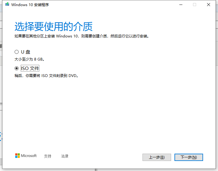 从微软官网下载Windows 10 镜像包, 目前最新版本的镜像为Windows 10 20H2, 下载MediaCreationTool20H2.exe,双击打开并选择所需的镜像下载.