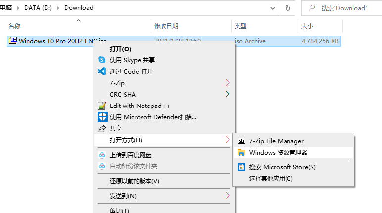 下载结束后, 用Windows资源管理器打开ISO文件,