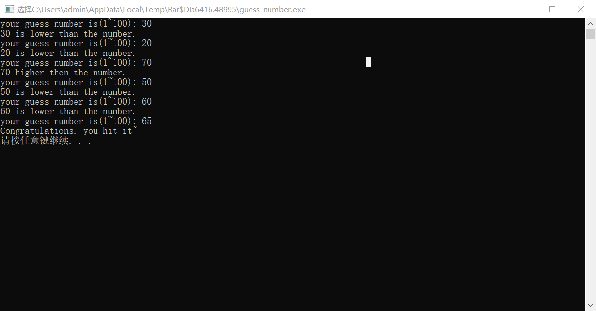 // 如果用户猜的数等于随机数,提示用户猜对了,程序结束