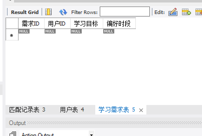 学习需求:需求ID、关联用户、学科分类(如编程/英语)、紧急程度(1-3级)。