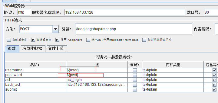 在脚本中通过 ${} 分别引用账号和密码