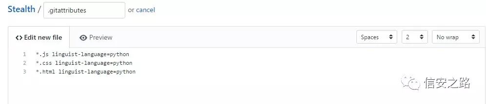 然后就是我们项目语言的设置,在这一方面 github 识别的非常不准确,需要我们自己更改语言为 python,我们需要新建一个文件 .gitattributes ,然后添加内容如下:
