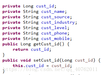 CREATE TABLE customer ( cust_id bigint(32) NOT NULL AUTO_INCREMENT COMMENT ‘编号(主键)’, cust_name varchar(32) NOT NULL COMMENT ‘名称’, cust_source varchar(32) DEFAULT NULL COMMENT ‘来源’, cust_industry varchar(32) DEFAULT NULL COMMENT ‘从事行业’, cust_level varchar(32) DEFAULT NULL COMMENT ‘级别’, cust_phone varchar(64) DEFAULT NULL COMMENT ‘电话’, cust_mobile varchar(16) DEFAULT NULL COMMENT ‘手机号’, PRIMARY KEY (cust_id) ) ENGINE=InnoDB AUTO_INCREMENT=1 DEFAULT CHARSET=utf8;