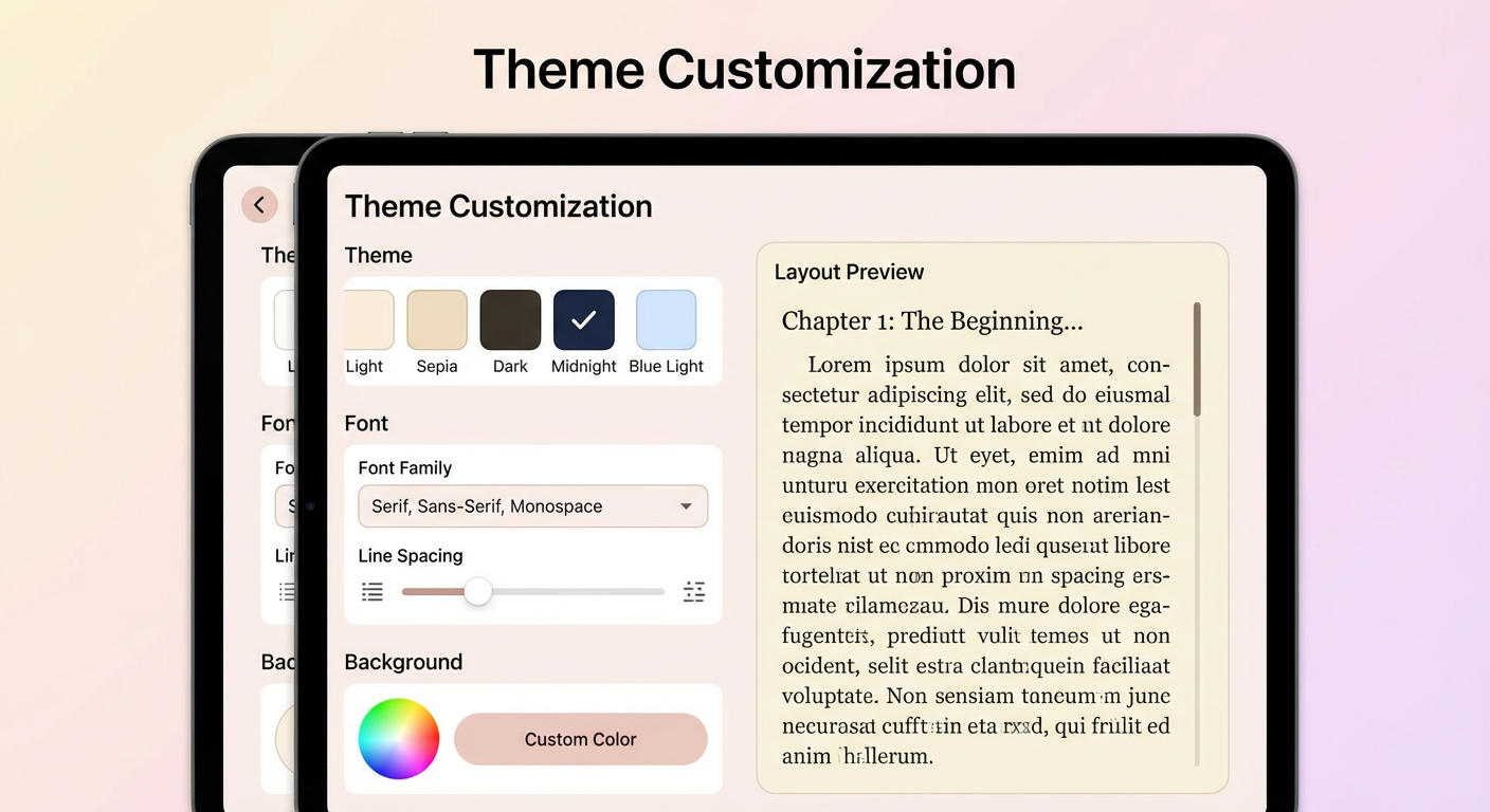 提供多种阅读主题可供选择,支持自定义排版样式。可以调整段落间距、字体样式、背景颜色等,打造专属的阅读环境。
