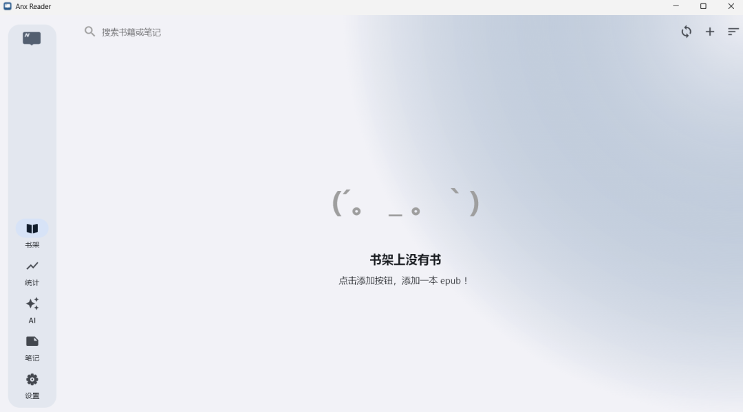 主界面设计简洁,所有功能一目了然。通过右上角的【+】按钮即可快速添加本地书籍。