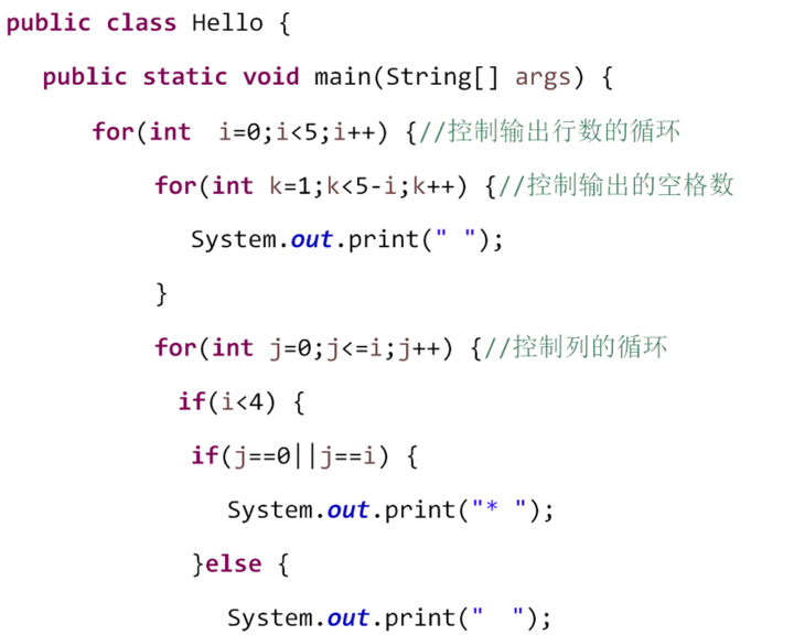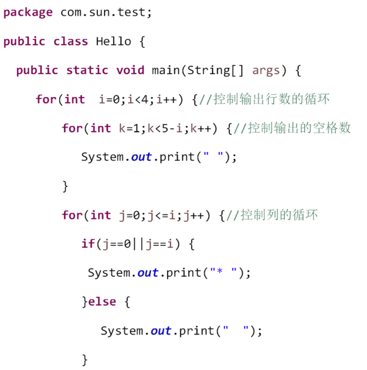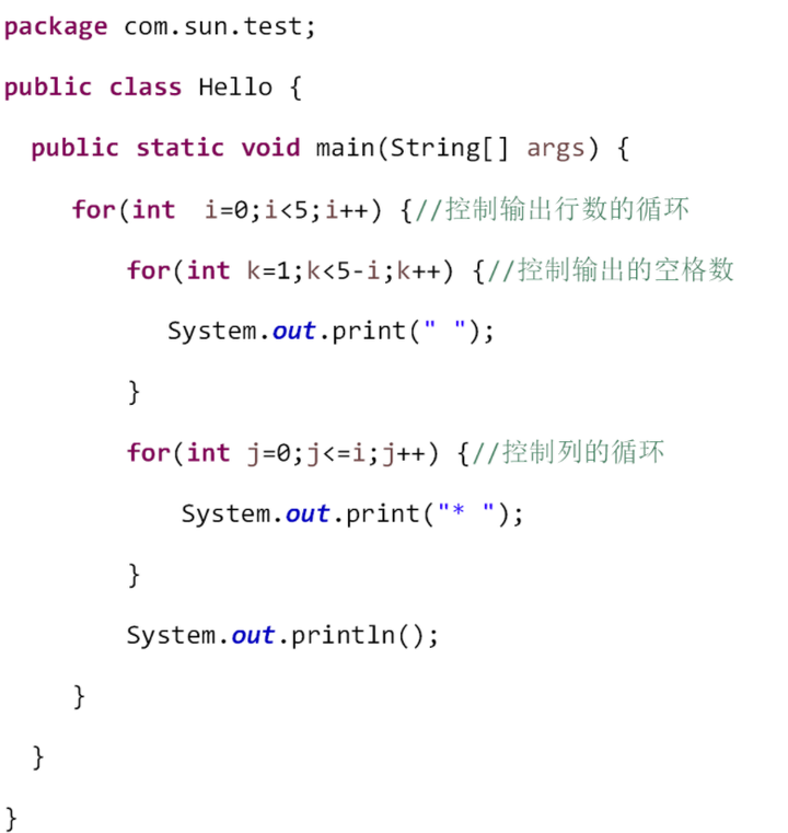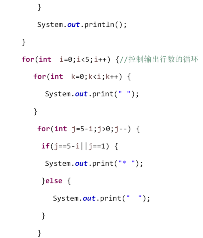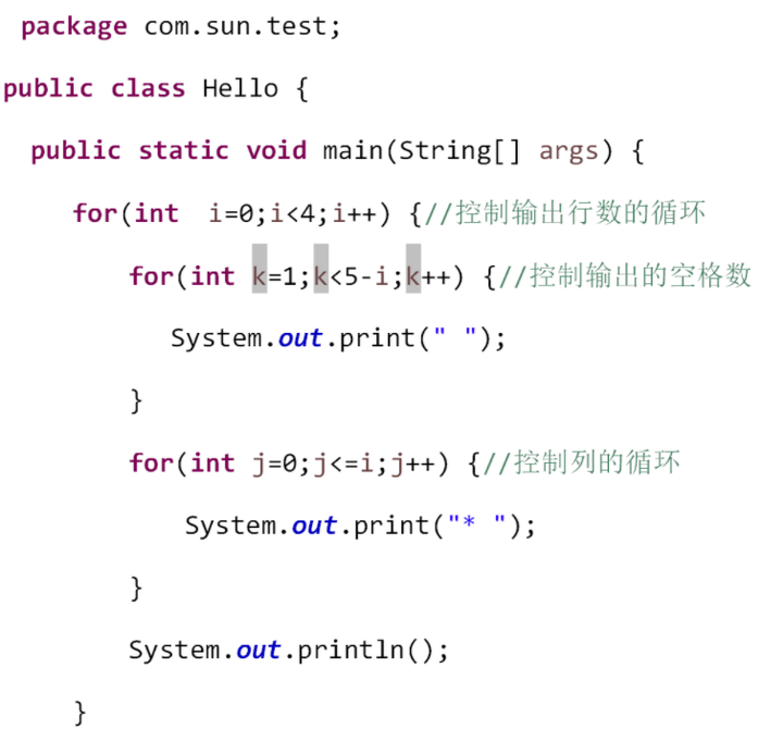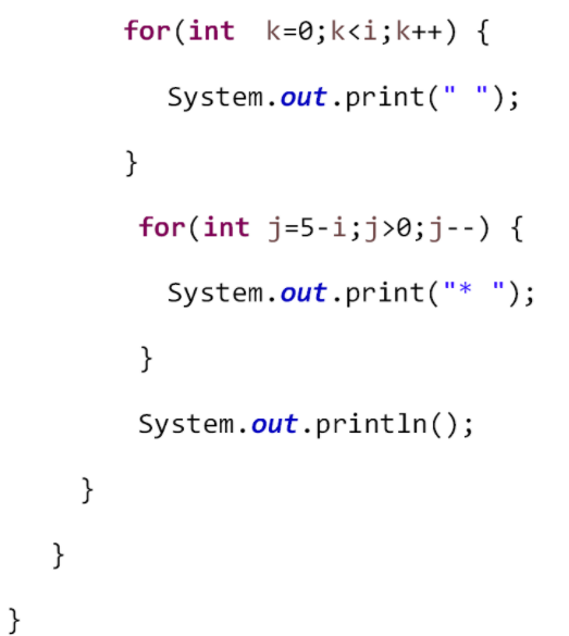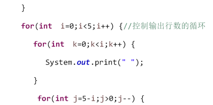 for(int k=1;k<5-i;k++) {//控制输出的空格数