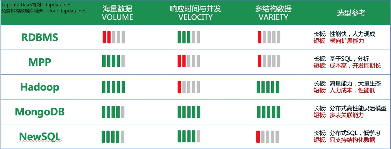 这里简单来看一下,如果是做数据统一平台选型参考的话,从它的海量数据能力,响应时间和并发能力和他支持多结构数据的能力上,我的个人见解。比如说我们说的现在的NewSQL的吧,他就是对多结构数据支持不是特别的理想。包括RDBMS、MPP也都是这样,那这个时候大家可以考虑一下用哪种方式。这取决于你的场景,MongoDB确实他有他自己的一些弱点,比如做多表关联的时候其实并不是他的优势,我们会建议尽可能避免这种多表关联的场景。但是如果你真的是避免不了的话,那他可能就不是一个很好的选择。