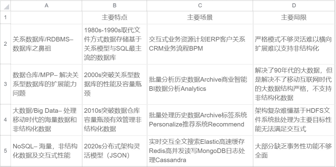 数据平台的这种产品从90年代开始,从关系型数据库到21世纪的数仓MPP,到后来的大数据,到现在的很多的NoSQL,NewSQL,有非常多的种类。他们都有什么样的特色呢?是否合适来做数据中台的一个存储呢?