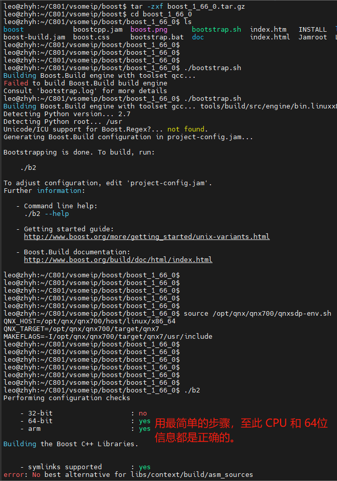 错误原因: libboost 的版本太老(目前版本: libboost1.65-dev)