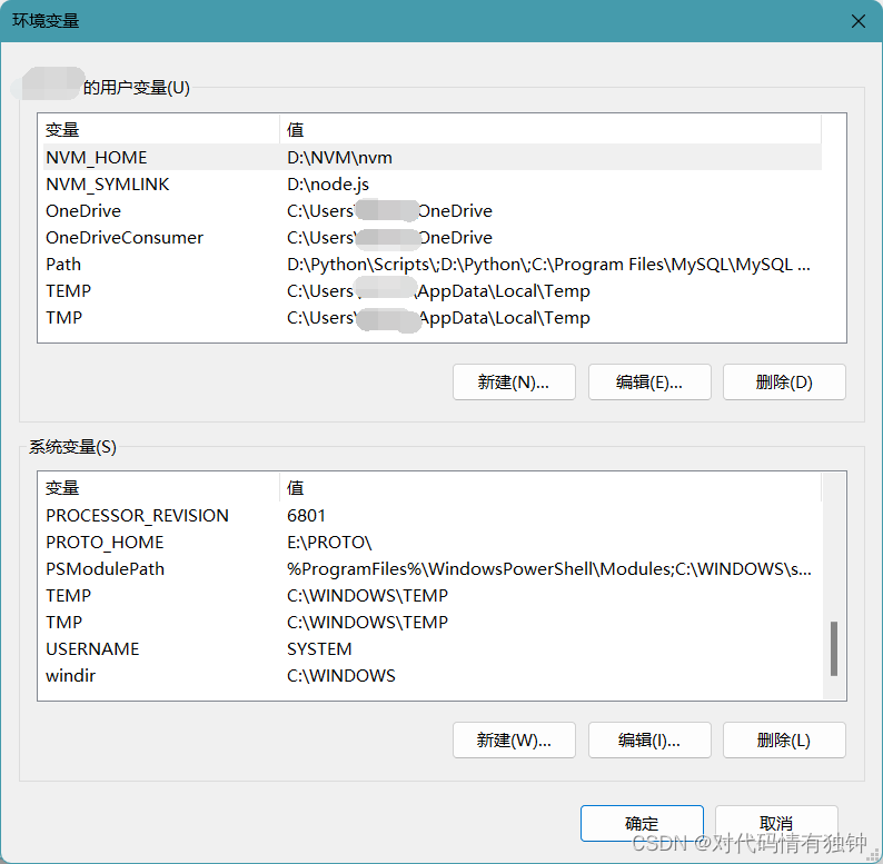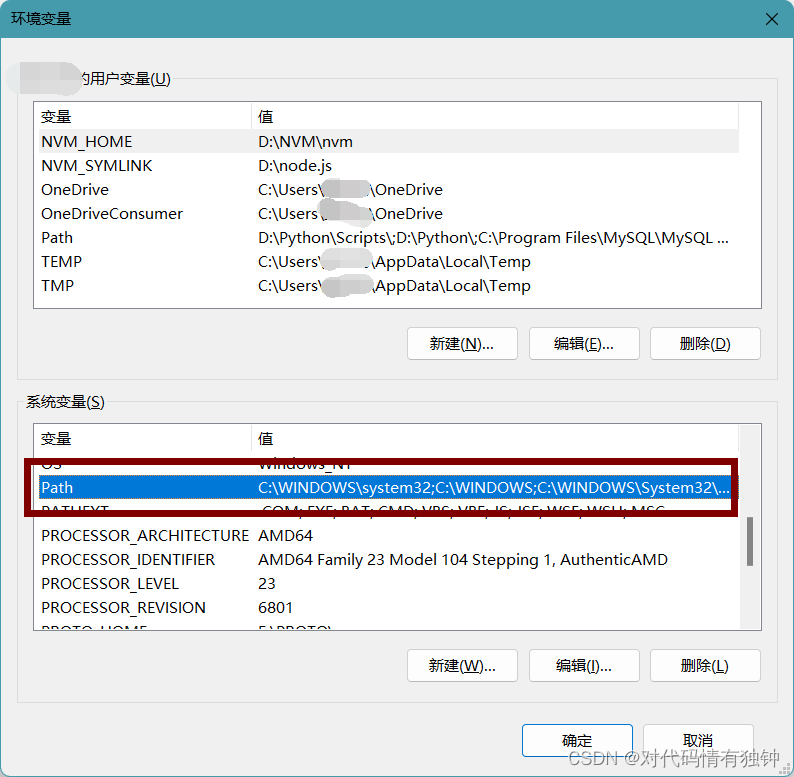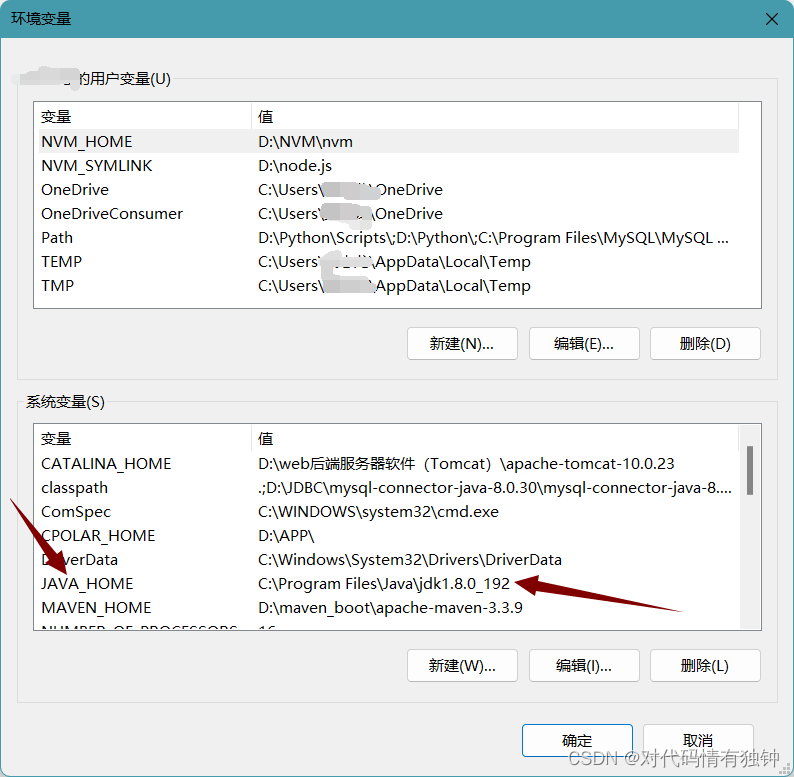 其中有用户变量和系统变量