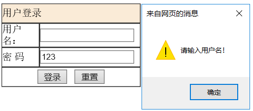 alert("请输入用户名!");
