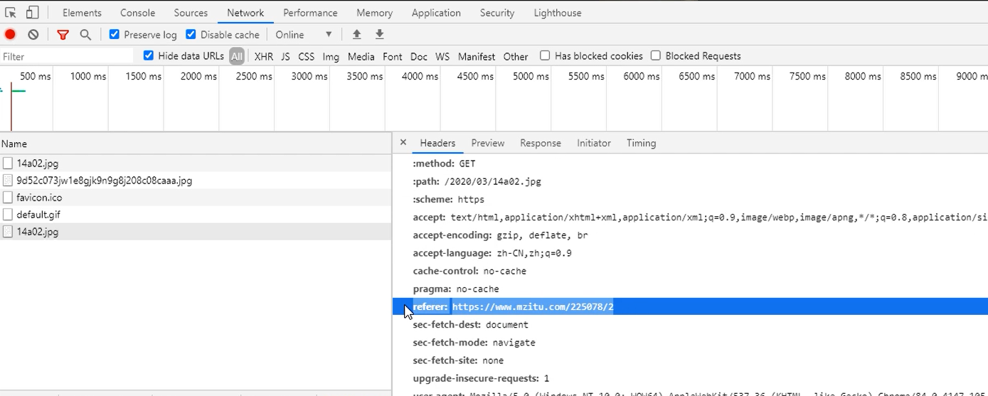 如果显示有防盗链,就把referer复制带上(客户从哪一个页面跳过来的,也就是上一个链接是什么)