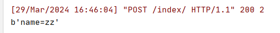 res=requests.post('http://127.0.0.1:8002/index/',data={'name':'zz'}) print(res.text) # json # res1=requests.post('http://127.0.0.1:8002/index/',json={'age':2}) # print((res1.text))