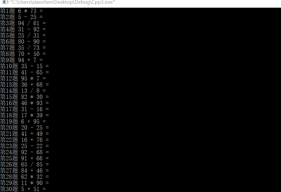printf("%d %c %d = \n", num1, oper[op], num2);