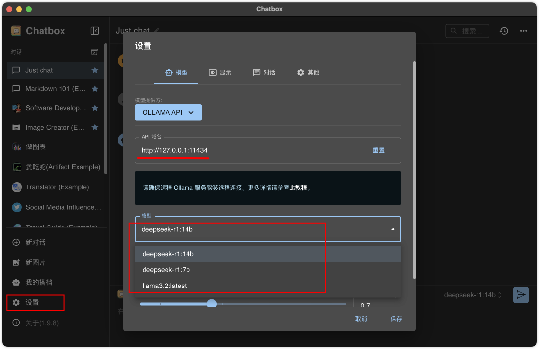 直接下载桌面应用,下载好后打开设置选择本地模型Ollama API,填写本地ollama地址,就可以选择本地已经下载好的模型了,最后确定即可