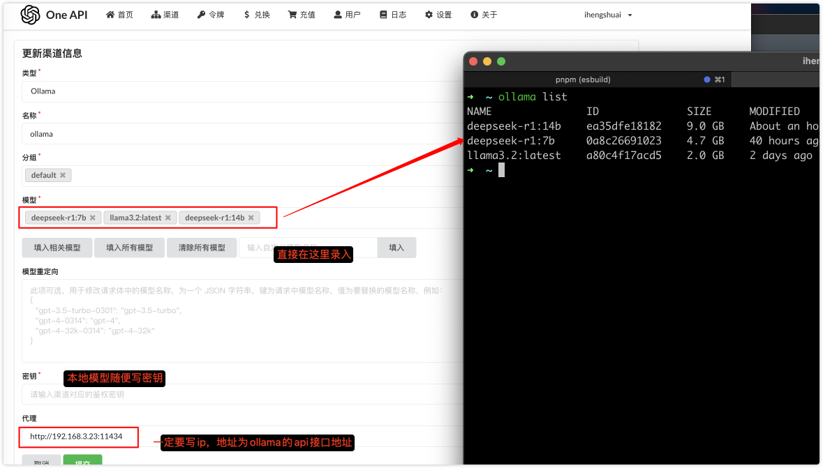 首先还是要先使用ollama list列出本地模型,用docker运行FastGPT后打开OneAPI系统