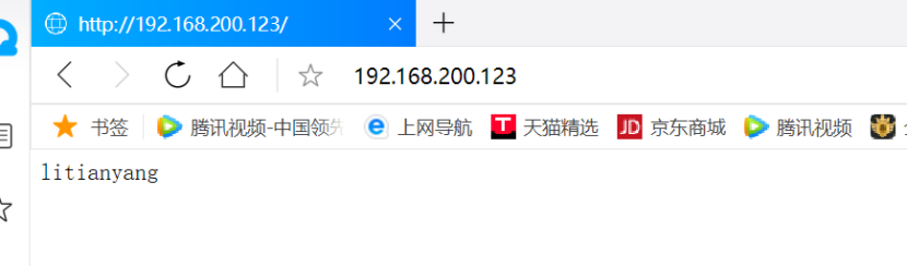 4、在网页目录下创建测试文件index.html,内容为用户名称,通过浏览器访问测试