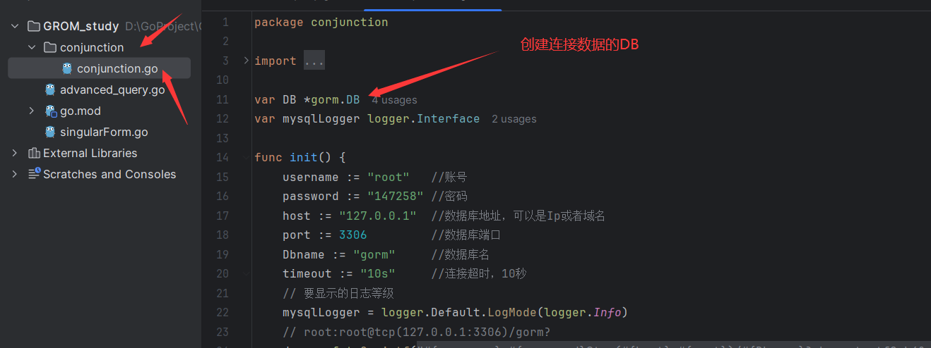 问题原因:在一个go文件中创建DB连接数据库后,其它的go文件无法直接调用。