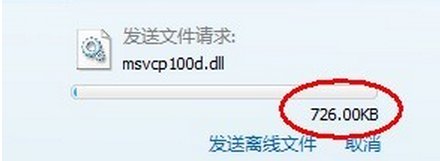 再试!我把mscvp100d.dll和zip都拷到D盘下,再用QQ发送,这次却全都成功了。朋友的问题也解决了。