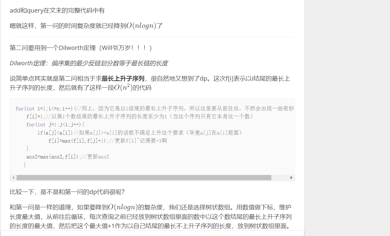 O(n^2)的DP,O(nlogn)的二分+贪心法,以及O(nlogn)的树状数组优化的DP。