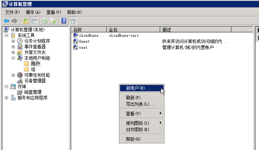 ②禁用管理员账户,然后在用户窗口右键空白,点击新用户创建一个普通的管理员账户,用户实现基本的系统或者网络管理、维护功能。