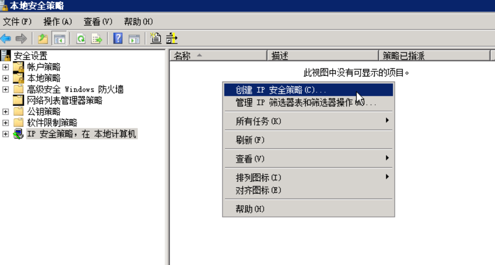 开始->运行->secpol.msc (本地安全策略)-> IP安全策略,在本地计算机