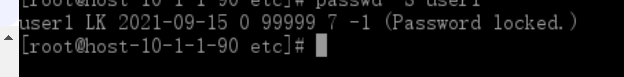 在创建完用户user1后,没给用户passwd口令时,账户默认为禁用状态: