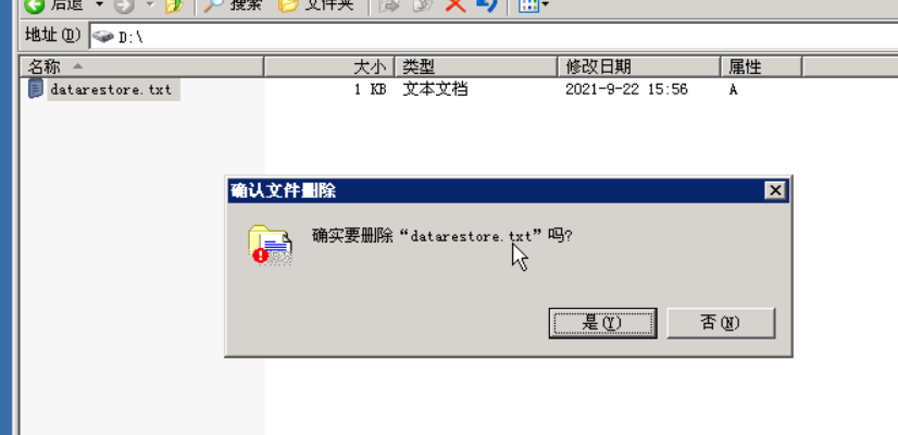 关闭winhex,打开D盘(新建立的分区),建立一个文本文件,命名为:datares.txt,(之前datarestore失败了,重起的名字datares,与下图不符,内容为hrello)并添加内容。