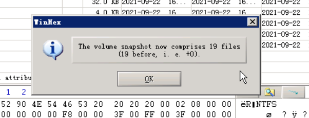 可以看到winhex自动查找硬盘文件系统,查找后找到被删除文件,被删除文件与存在的文件颜色不同:
