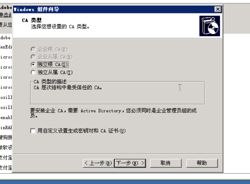 依次点击:“添加删除windows组件”,在组件向导中选中“应用程序服务器”与“证书服务”,先不要点击下一步,双击“应用程序服务器”,选中“ASP.NET”与“Internet信息服务(IIS)”