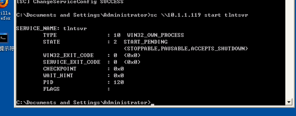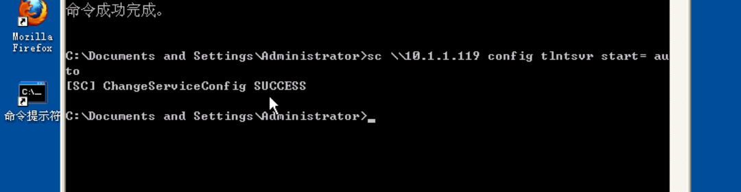 命令:sc \\10.1.1.119 config tlntsvr start= auto