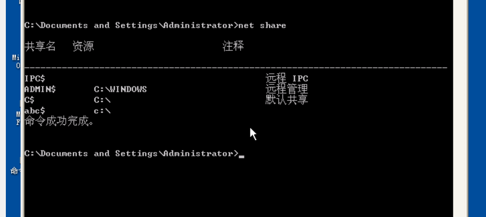 命令:net share abc$=c: