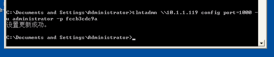 输入tlntadmn \\10.1.1.119 config port=1000 -u administrator -p 主机B的密码