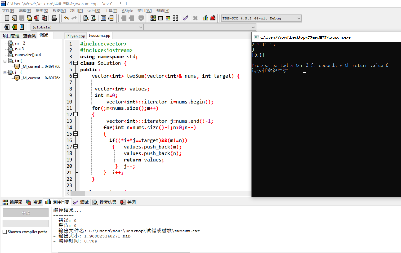 values:twoSum函数中的局部变量,暂时存答案,返回给main