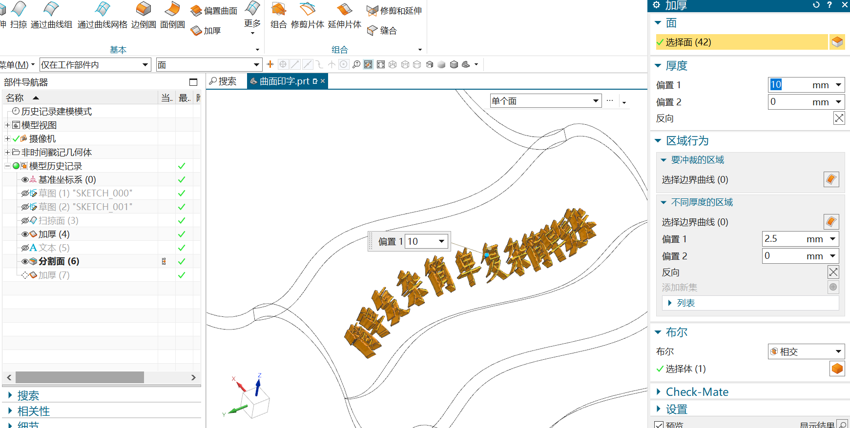 NX2306 建模- 实体表面印字(平面,圆柱面,曲面表面的阴阳文)