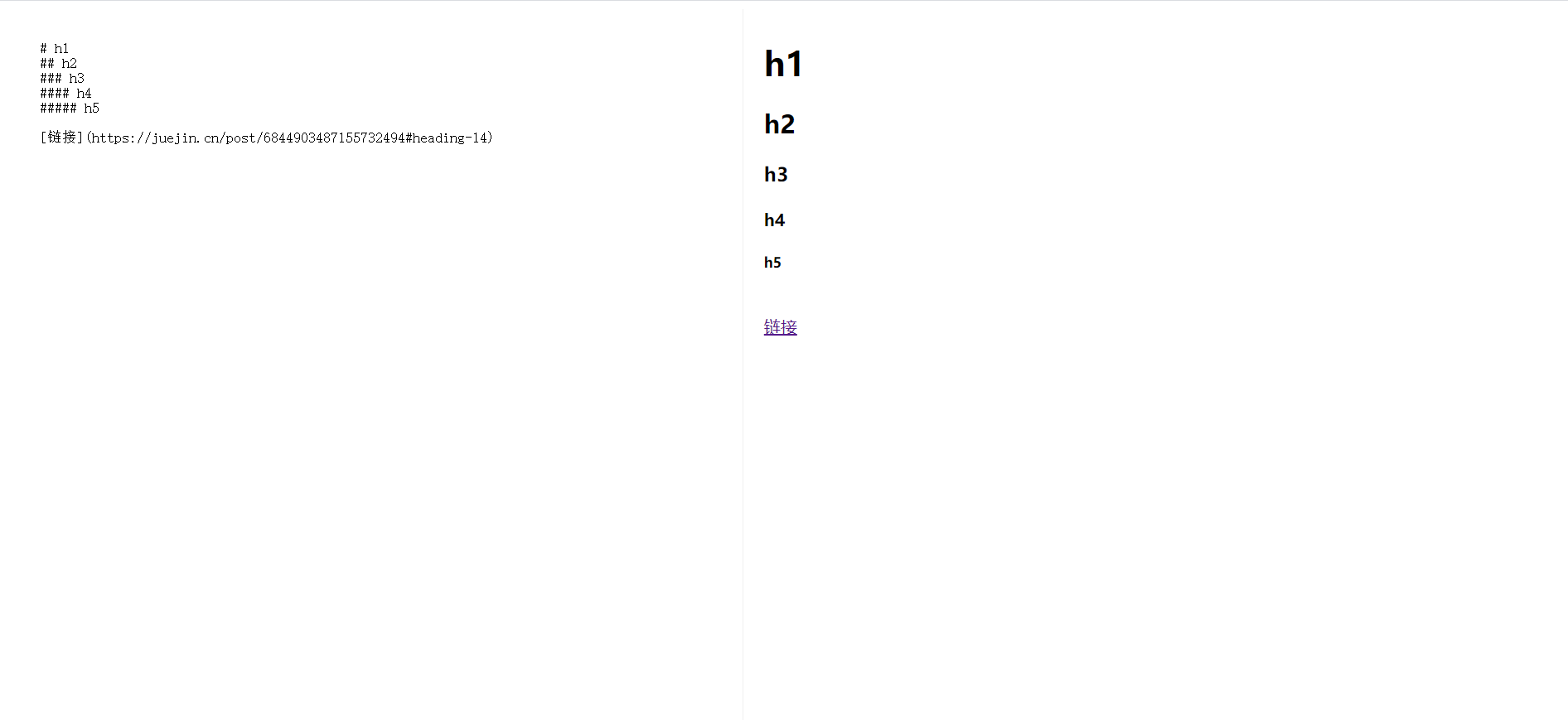 思路就是:左边一个textarea,用来当作书写md语法的界面。右边一个div用来预览结果。