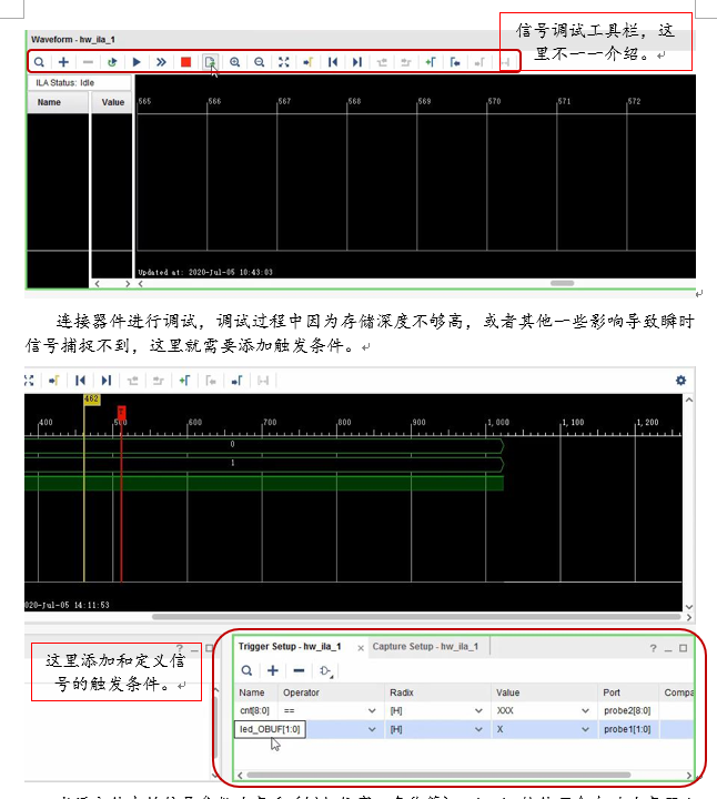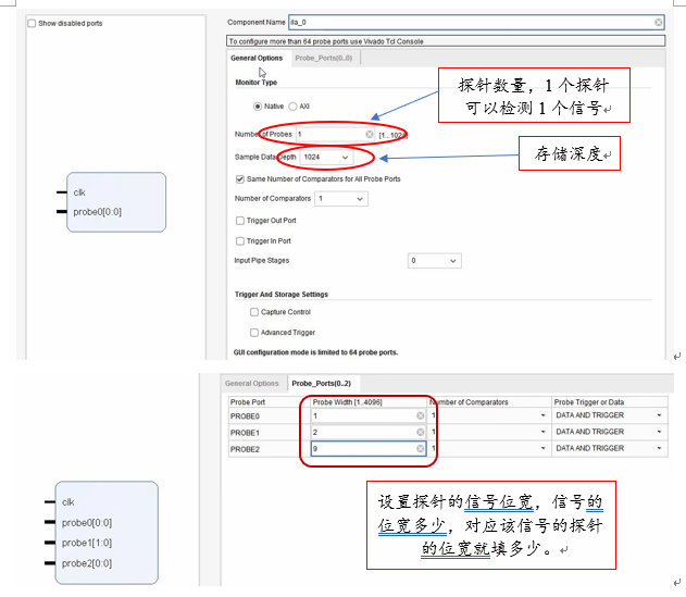 ILA:监控逻辑内部信号和端口信号。