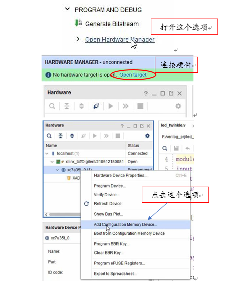 然后重新生成比特流文件,Bin文件会跟着比特流文件一起生成。然后下载到硬件就行,前提是配置了与外部存储芯片相同的硬件信息。