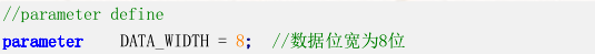 参数其实就是一个常量,常被用于定义状态机的状态、数据位宽和延迟大小等,由于它可以在编译时修改参数的值,因此它又常被用于一些参数可调的模块中,使用户在实例化模块时,可以根据需要配置参数。在定义参数时,我们可以一次定义多个参数,参数与参数之间需要用逗号隔开。这里我们需要注意的是参数的定义是局部的,只在当前模块中有效。例子如下。