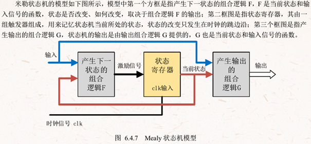 1.Mealy状态机:组合逻辑的输出不仅取决于当前状态,还取决于输入状态。