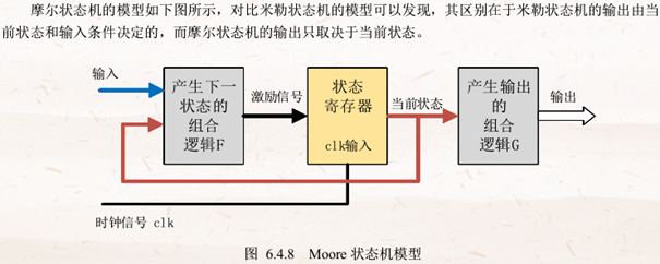 2.Moore状态机:组合逻辑的输出只取决于当前状态。