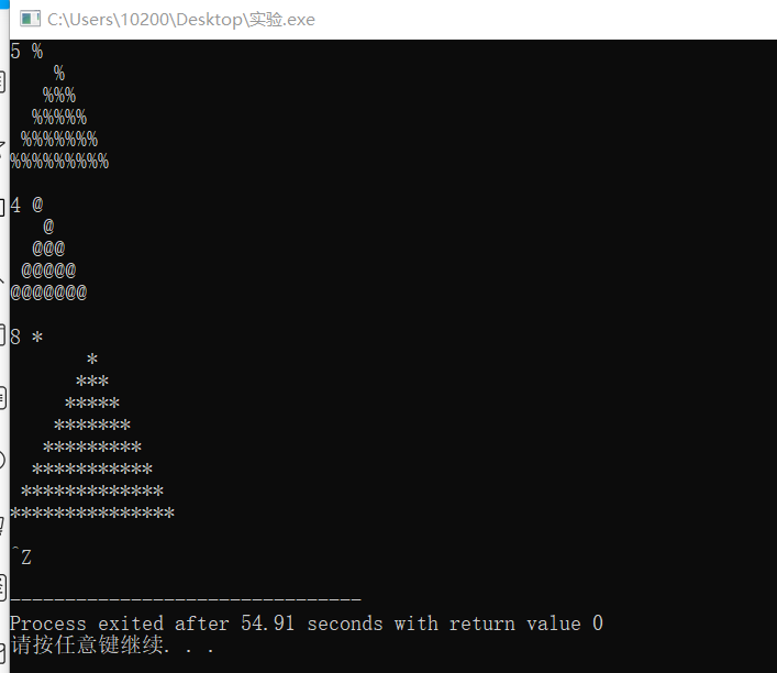 #include <stdio.h> void draw(int n, char symbol); int main() { int n,symbol; while(scanf("%d %c",&n,&symbol) != EOF) { draw(n,symbol); printf("\n"); } return 0; } void draw(int n, char symbol){ for(int line=1;line<=n;line++) {for(int i=1;i<=n-line;i++) printf("%c",' '); for(int j=1;j<=line*2-1;j++) printf("%c",symbol); printf("\n");}}
