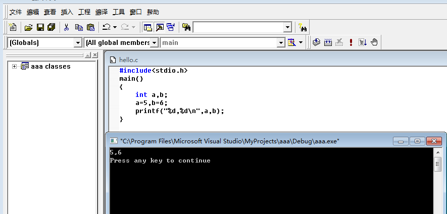 #include<stdio.h> main() { int a,b; a=5,b=6; printf("%d,%d\n",a,b); }