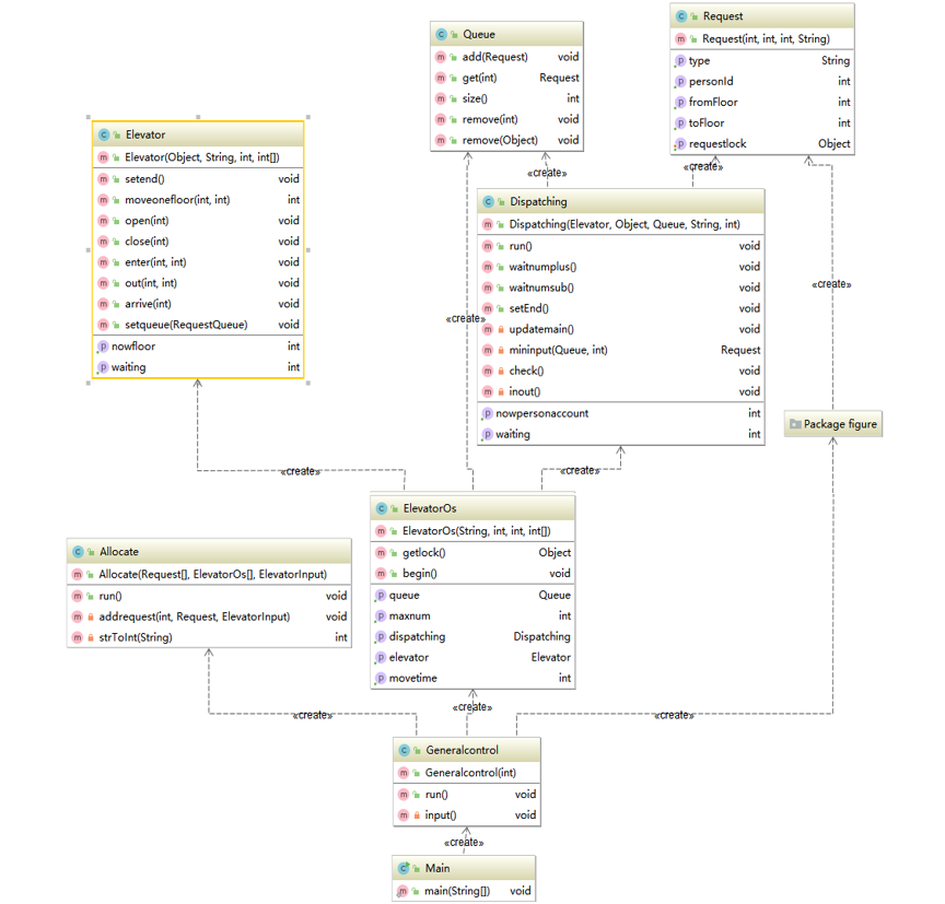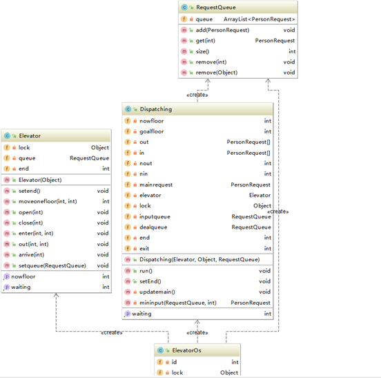 即dealqueue(电梯内人员),inputqueue(电梯外人员),mainrequest(主请求),由于有了第一次的构架设计,这一次只需要修改电梯系统中子调度器的调度算法即可,其余部分不需要修改。
