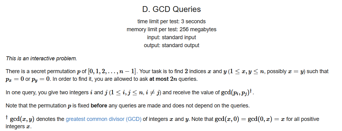 Codeforces Round #838 (Div. 2) D. GCD Queries (数学,交互)