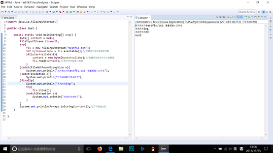 功能2:需要添加finally关闭文件。无论上面的代码是否产生异常,总要提示关闭文件ing。如果关闭文件失败,提示关闭文件失败!