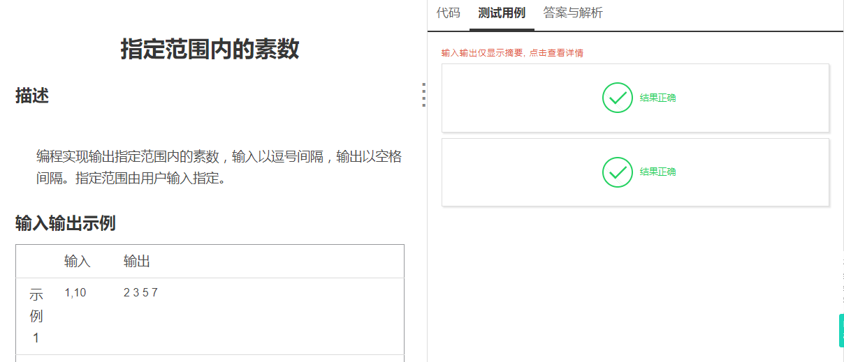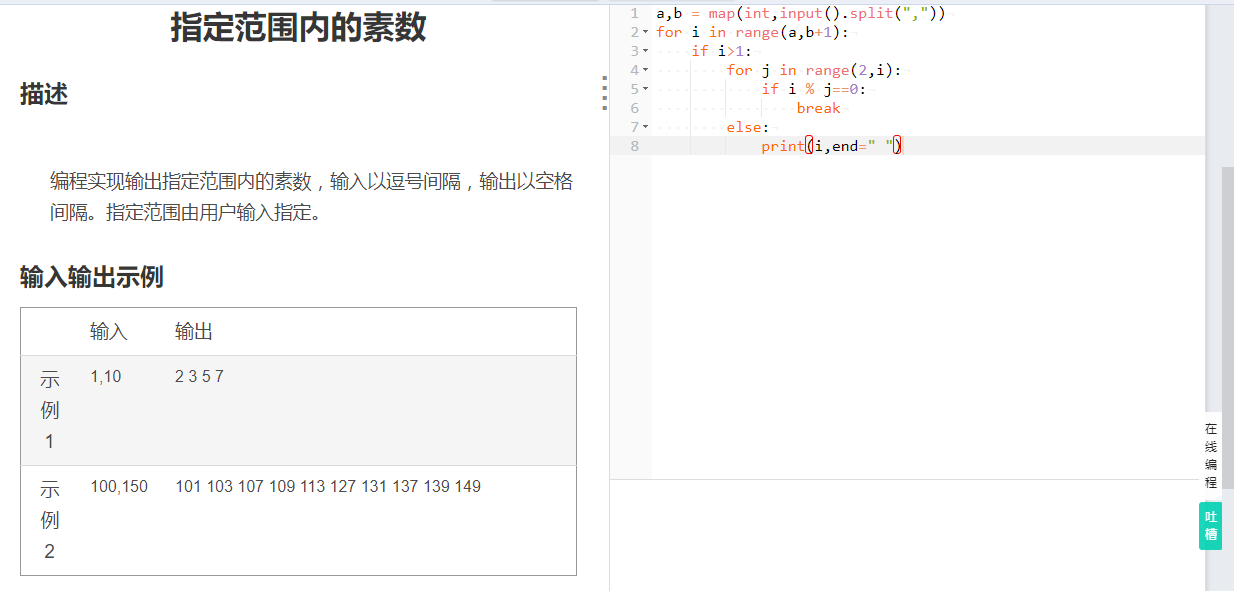 编程实现输出指定范围内的素数,输入以逗号间隔,输出以空格间隔。指定范围由用户输入指定 。