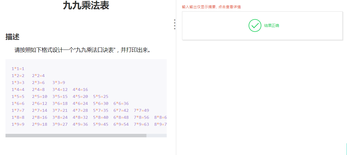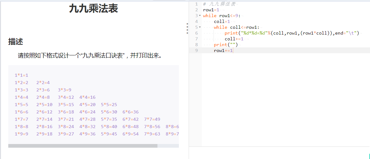 请按照如下格式设计一个“九九乘法口诀表”,并打印出来。